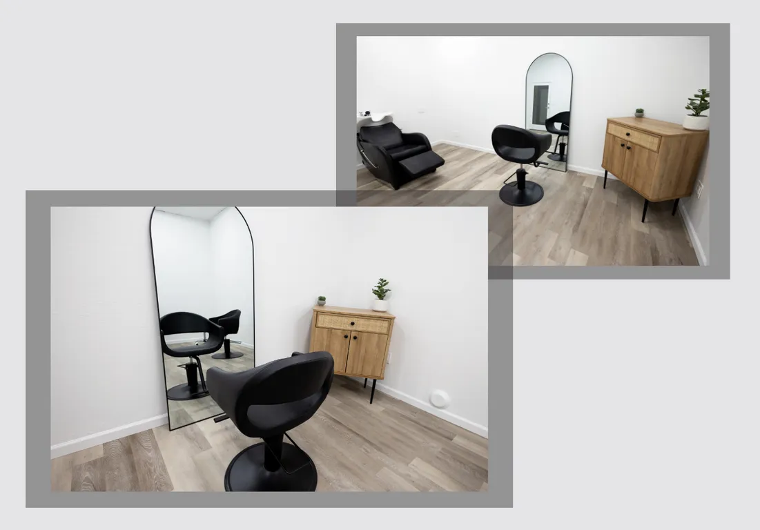 Each unit can be equipped stylist chair, shampoo bowl with leg lift, and mirror.